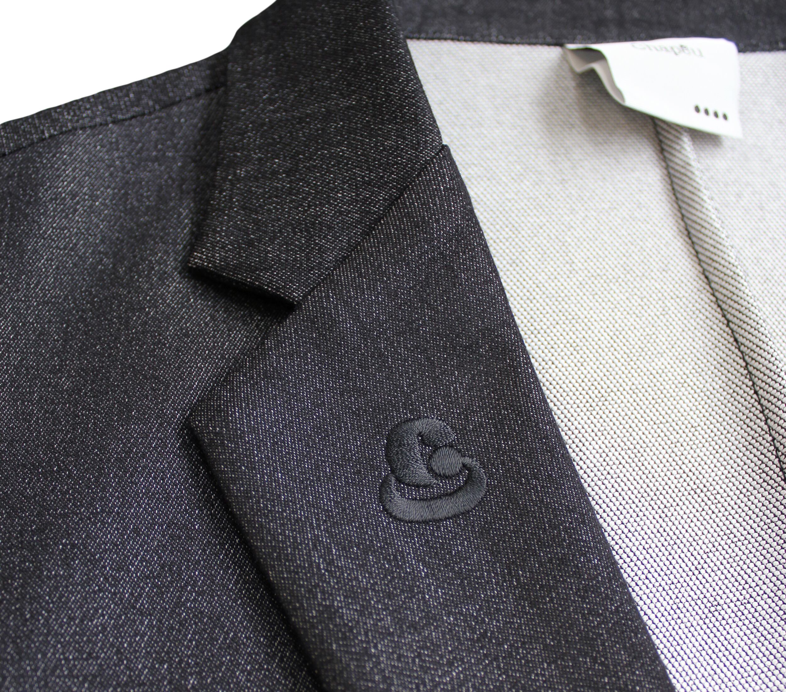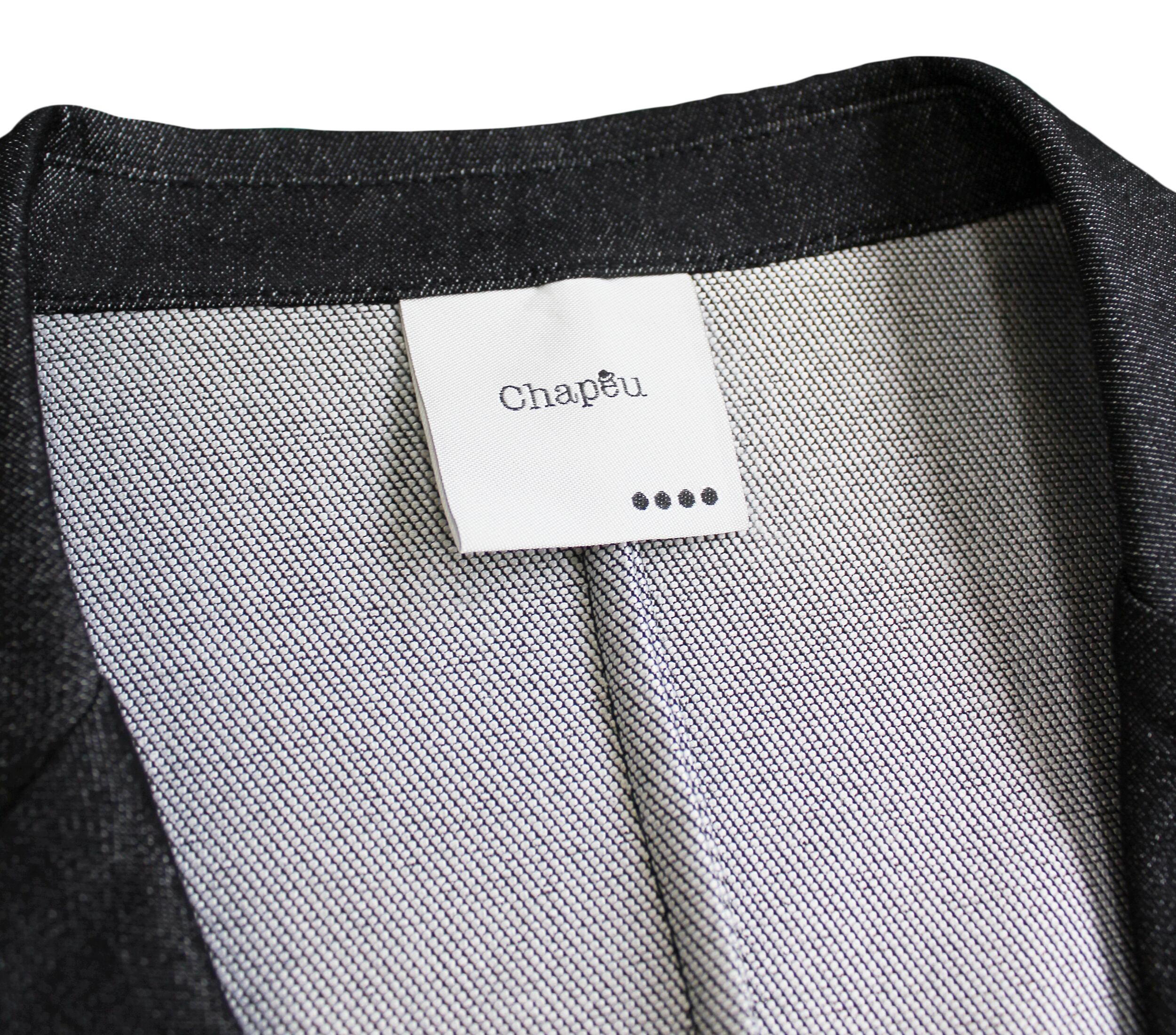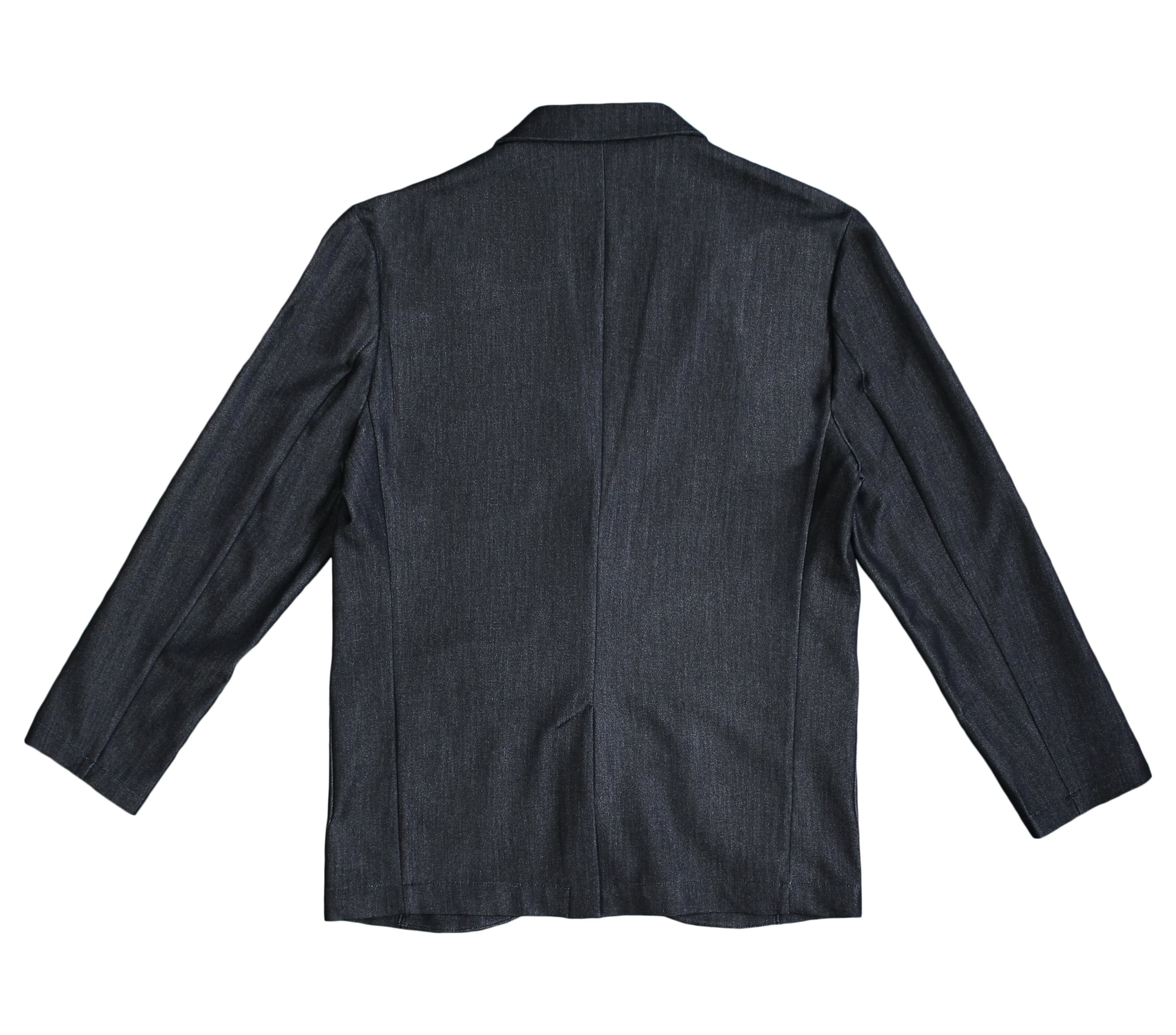 デニム調(表に出てくるのは色が付いている糸。裏に出てくるのは白の糸。)のストレッチ生地を使ったジャケットです。