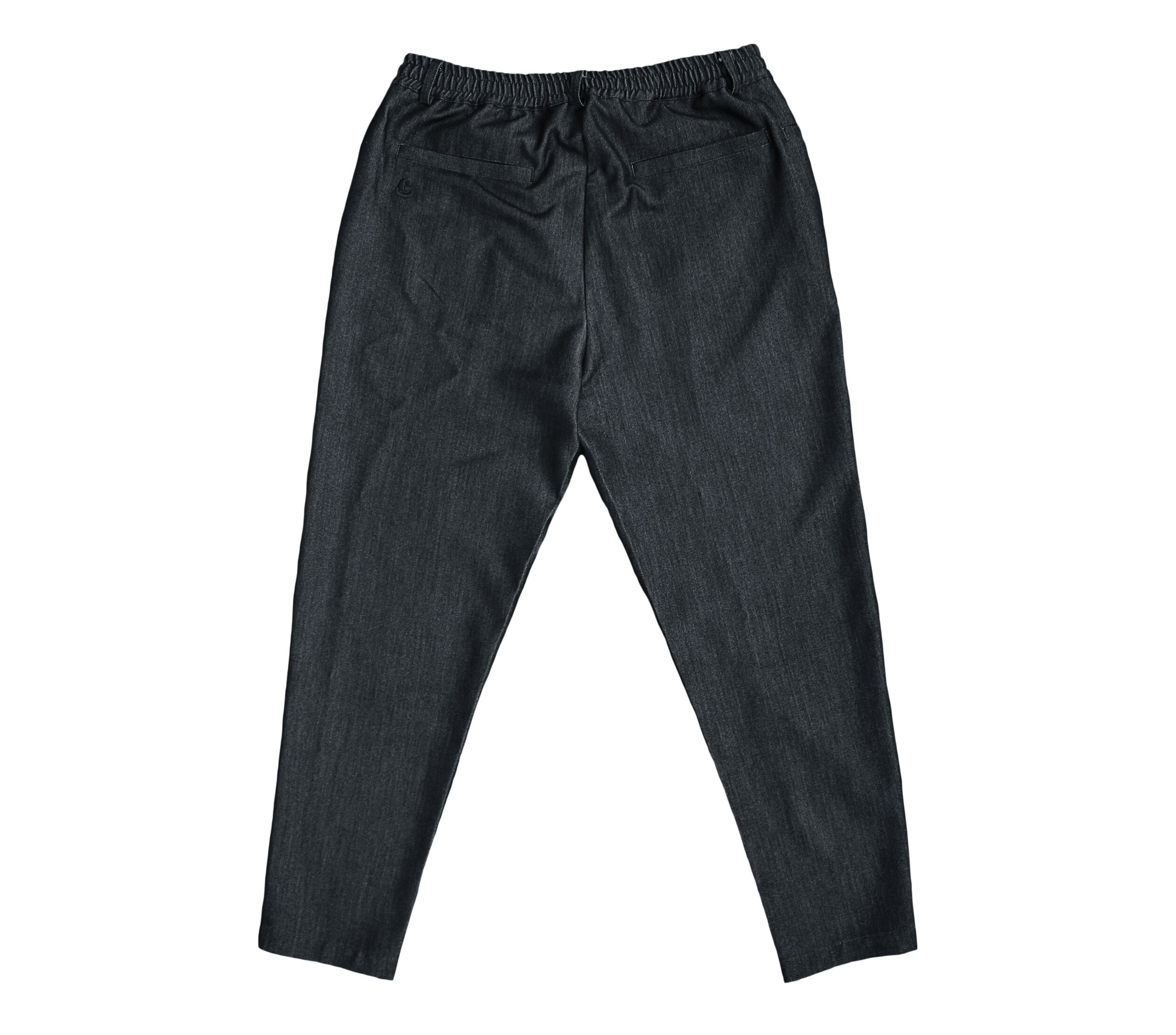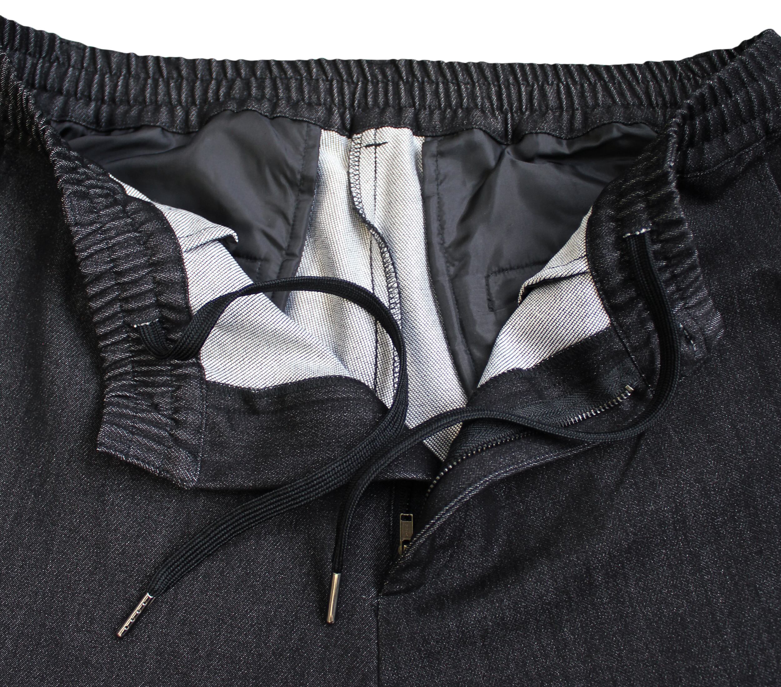 デニム調(表に出てくるのは色が付いている糸。裏に出てくるのは白の糸。)のストレッチ生地を使ったパンツです。