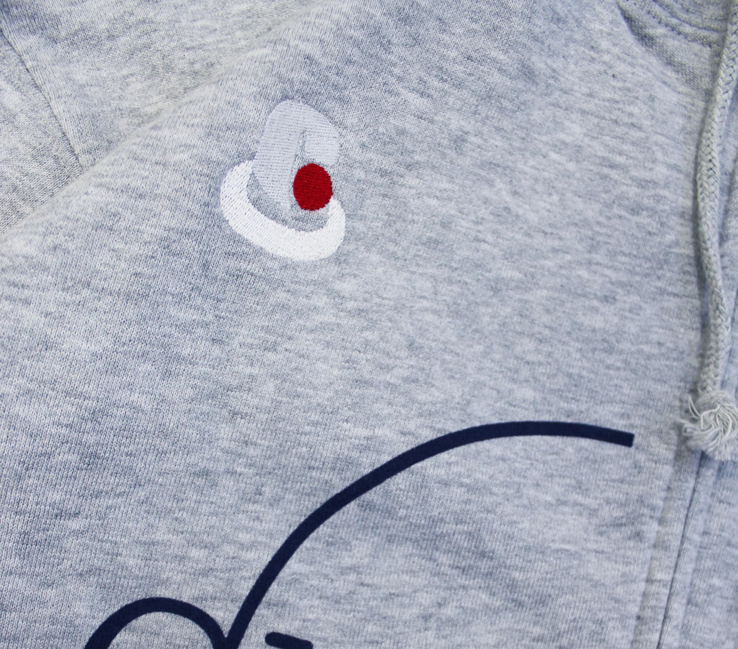 胸のロゴとドットはシルクスリーンプリントを。ロゴマークは刺繍になります。