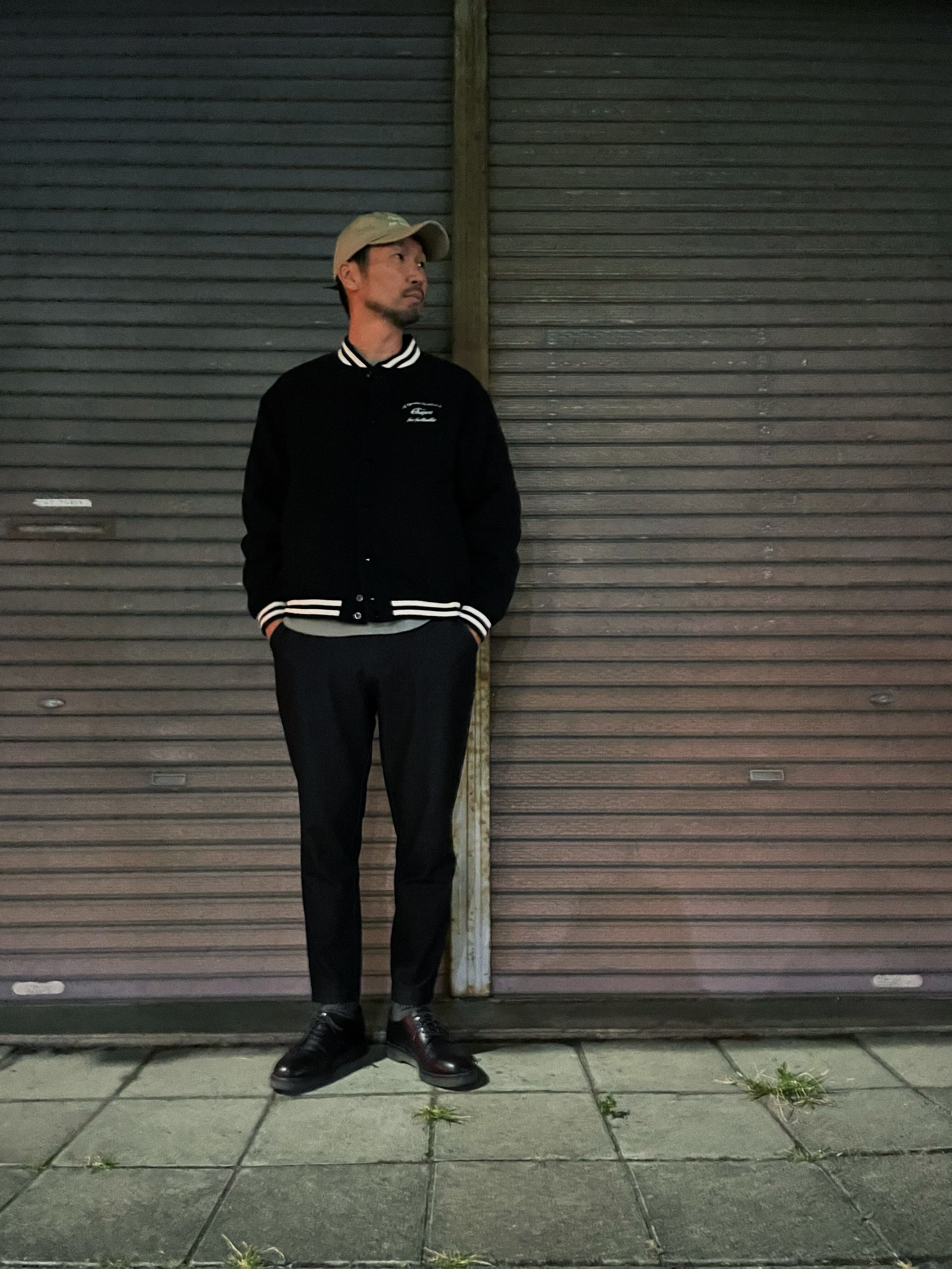 襟・袖・裾リブや金属スナップボタン・メルトン生地で、オーセンティックなスタジャンの雰囲気になっています。