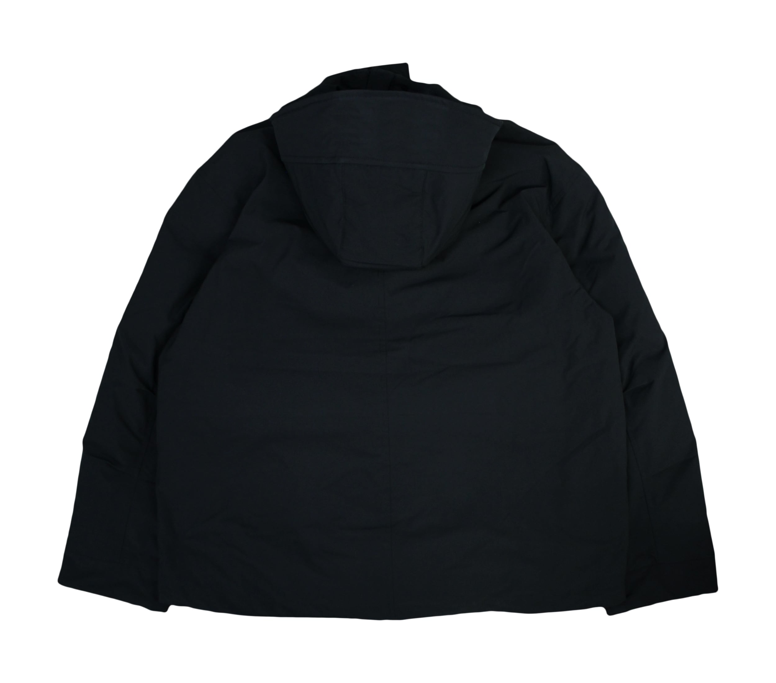 強度が高く・柔らかいながらもハリがあるのが特徴の、タッサーという生地を使用した、ダウン入りフード付きジャケット。